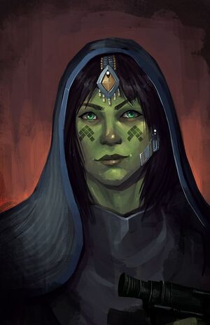 The Mekagrani (singular: Mekagran, plural: Mekagrani/Mekagrans, adjective: Mekagran) (Trianarö: Mekagrûlö) are a spiritual people hailing from their lush homeworld Mirall. It's speculated that they originated from a lost colony of humans, the Mekagrani evolved to have greenish skins due to the consumption of the local flora which has affected their genome. After a few centuries of living free under the Mekagran Prelacy, the Mekagrani were subjugated roughly 30 BBT by the Holy Imperium of Trianar.