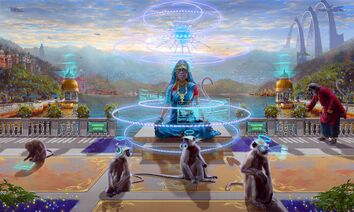 |caption10=Monkey uplift-cyborgs meditating on Sophican, member world of the Simian League. | |||