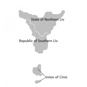 Livana is a confederacy of three states; Republic of Southern Liv, State of Northern Liv, and Union of Cinis. The Confederacy was formed following the fall of monarchies throughout the isles, particularly the Kingdom of Carna and the Kingdom of Livonia during the Years of Insurrection in the 19th century. Local polities that had risen up from the former monarchies amalgamate into the Republic of Livana after the signing of the Article of Confederation in 26 September 1848. Democracy in Livana continues uninterrupted until the beginning of the 20th century, when a corruption scandal involving the majority of the government called the Vizier Scandal was uncovered. Livana filed for bankruptcy in late 1950, and experienced a 9 month long civil war in 1951. The civil war led to the rise of the Tarsis Regime led by Colonel Tarsis Vitruvia. The Tarsis Regime ruled over Livana with almost no power limitation. Livana fell into another bankruptcy in 1979, and living conditions declined. This led to the downfall and subsequent murder of Tarsis in 17 June 1982. The new Livanan Constitution of 1983 was approved after a brief period of emergency government. The Reformation Era ensues the fall of Tarsis, restoring living condition and prosperity to Livana. However, Livana is still burdened by debts, and political cohesion in Livana became fragile and turbulent.