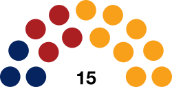 The Council is composed of 15 Councillors elected for mandates of 6 years. There are 5 Councillors for each of the three islands of Anserisa. The Councillors are elected by a regional proportional voting system.