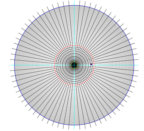 The 3SGS system divides the galaxy into rings that are further subdivided into 5°-wide segments (except for C series rings). The sectors are numbered counter-clockwise from the righthand horizontal cyan line and there is a total of 72 sectors in a ring. The rings are grouped into three series. The A series rings lie between the 50% border (red) that divides the galaxy into two portions that have roughly the same amount of stars in them and the border to the galactic bulge (yellow). The B series rings lie between the 50% border and the 99% border (blue) that encompasses roughly 99% of the galaxy's stars. The C series lie inside the galactic bulge border and has three layers as opposed to the one layer of the A and B series. | The 3SGS system divides the galaxy into rings that are further subdivided into 5°-wide segments (except for C series rings). The sectors are numbered counter-clockwise from the righthand horizontal cyan line and there is a total of 72 sectors in a ring. The rings are grouped into three series. The A series rings lie between the 50% border (red) that divides the galaxy into two portions that have roughly the same amount of stars in them and the border to the galactic bulge (yellow). The B series rings lie between the 50% border and the 99% border (blue) that encompasses roughly 99% of the galaxy's stars. The C series lie inside the galactic bulge border and has three layers as opposed to the one layer of the A and B series. | ||