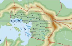 As they were venturing west, they found only a few places that were good enough to live in. The 2 biggest settlements are Sardin and Astro, with some other notable settlements being Ulis-Ulta and Kreanta.