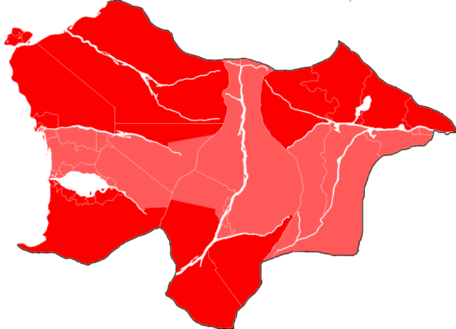 The two distinct regions of the territory known as Moellia. Outer Moellia in red and Inner Moellia in light red.