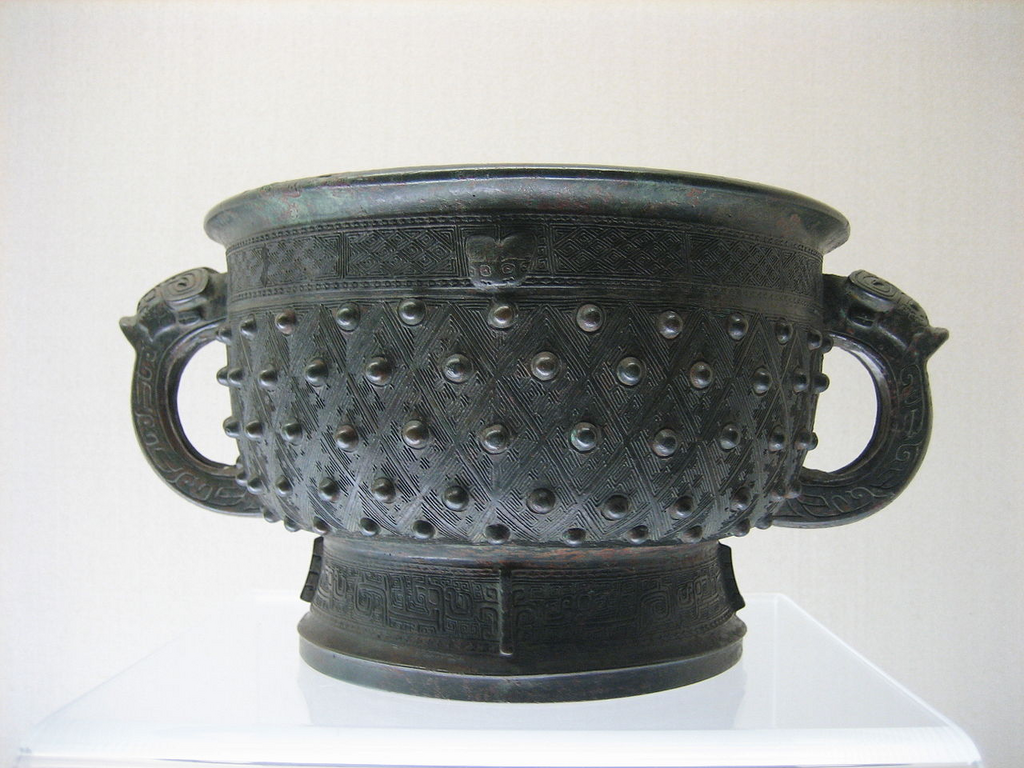 A two-handled bronze pot (1600–1046 BC)