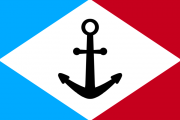 Naval Ensign of Holy FreeThe Naval ensign of Holy Free is adopted on 27 October 1994. It is used on vessels and battleships of Holy Free. It is composed of a white diamond on a blue and red background with an anchor in the center. It symbolizes the sea.