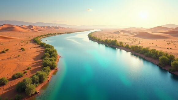 The river is particularly significant for its role in supporting agriculture in the otherwise arid regions of Sokhanistan. Sophisticated irrigation networks, some dating back to the Guththuga Period, channel the Sjuhu’s waters to sustain fields of sorghum, millet, and dates. These ancient systems are complemented by modern dams and reservoirs, which not only regulate the river’s flow but also generate hydroelectric power. The fertile riverbanks have become a corridor of human activity, with villages, farms, and bustling markets dotting its length, creating a stark contrast to the surrounding arid landscapes.